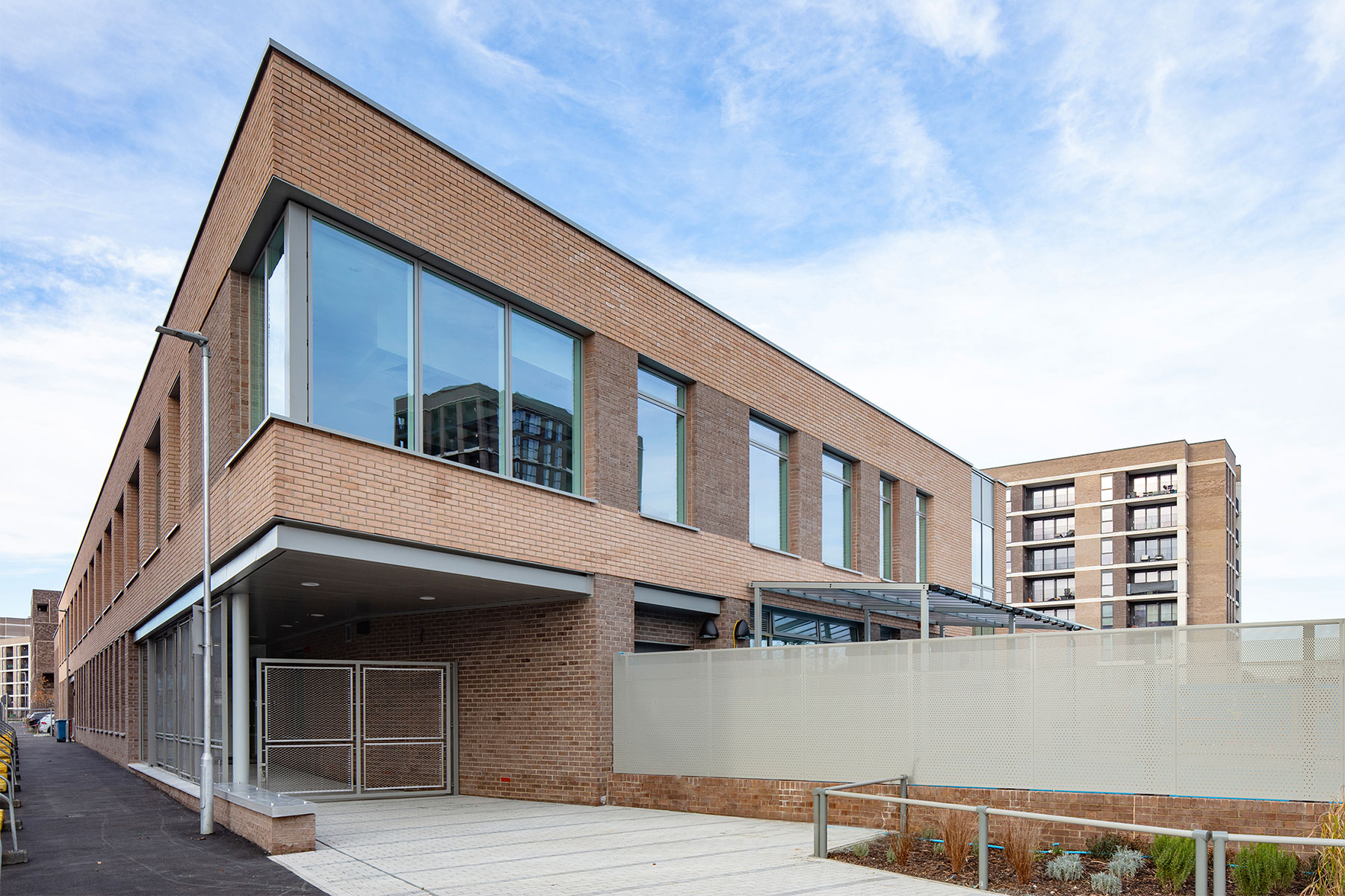 Emmanuel Community School is a new primary school built as part of the wider Beam Park redevelopment project in Havering, southeast London. The Department of Education (DfE) and Havering Council set out their requirements for a new build two form entry primary school to serve the newly established Beam Park community with a focus on special educational needs (SEN) capability. The schools is steel frame with structural columns typically in each corner of the classrooms with internal partition walls so that the spaces can be adapted providing future flexibility. The upper floors and roof will be formed from precast concrete planks with an insitu concrete topping. The planks are exposed on the underside in certain spaces to maximise headroom and provide exposed thermal mass.